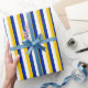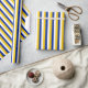 Umschlagpapier mit gestreiftem Muster in gelben, blauen und weißen Farben (aus der Flagge Bosnien und Herzegowina)