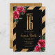 Feiern Sie stilvoll mit dieser einzigartigen 16 . Geburtstag Einladung mit einer großen Goldfolie aus Imitat 'Sweet 16'. Der solide schwarze Hintergrund ist mit diagonalen Streifen im gleichen goldenen Folieneffekt mit üppigen rote Rosen in den gegenüberliegenden Ecken gesäumt. Falls gewünscht, ist das auffällige 'Sweet 16' optional und kann gelöscht werden, um dieses Template für andere Gelegenheiten zu verwenden. Mit der bereitgestellten Vorlage können Sie Ihre Ereignisdetails anpassen. Suchen Sie ID757, um weitere Produkte und Farboptionen für dieses Design zu sehen.
