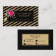 Schwarzer Glitzer Streifen Fotograf , Boho Hochzeitsplaner, Vintage florale Visitenkarten, Floral Event Planner Business Cards, Pink Blume, Selbst Stylist Business Cards mit Kontaktsymbole auf der Rückseite.