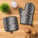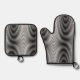 Streifen aus schwarzem und weißem Moiré - Abstrakt Ofenhandschuh & Topflappen-Set