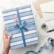 Abstrakte Digitalkunst aus hellblauen/grauen Streifen, umrahmt von dünnen, massiven blau/grauen Streifen vor weißem Hintergrund.
