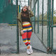 Wunderschöne und moderne Capri Leggings für Frauentag in blau, rot und gelb gestreiftes abstraktes Design.