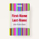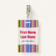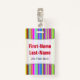 Dieses AbzeichenAusrüstungsbeschreibungen ein ins Auge fallendes Muster der Streifen (oder der Linien) der verschiedenen Farben. Es kennzeichnet auch einen kundengerechten Namen in Rot farbigem Text innerhalb eines hellfarbigen Bereichs. Es gibt auch eine kundengerechte Mitteilung unter dem Namen dieses könnte Informationen wie eine Stellenbezeichnung zeigen oder ein Beruf oder ein Geschäft/ein Firmennamen. [~Z0000176]