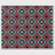 Dieses Verpackungspapier hat ein kunstvolles Deko-Design aus Diamantformen mit Diagonallinien, schwarzen Diamanten und farbigen Diamanten in Blau- und Cranberry-Tönen.