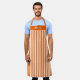 Diese vollbedruckte Schürze weist ein gestreiftes Halloween-Orange-Weiß-Muster auf. Oben oben befindet sich ein orangefarbener Bereich für Ihren personalisierten Namen.