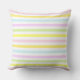 Streifen in hellen, mehrfarbigen Pastellfarben auf weißem Kissen.