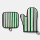 Streifen mit weißer und grüner Candy Cane Ofenhandschuh & Topflappen-Set