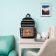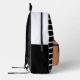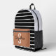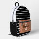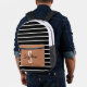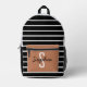 Stilvoll schwarz-weiß gestreifter Rucksack mit karamelliger Vordertasche mit individuellem Namen und Initial. Ideal für Schule, Reisen oder den täglichen Gebrauch.