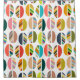 Dieser Duschvorhang hat ein modernes Design aus ovalen Halfen, einige solide und einige gestreift, auf einem Feld von weiß.