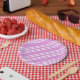 Rottöne in verschiedenen Streifen, Blues, Grüntöne, Pfeffer und Rosa in Weiß.