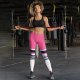 Schöne und moderne Capri Leggings für Frauentag in Rosa und Blau Streifen.