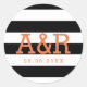 Streifen schwarz und weiß | Orange Monogram & Date Runder Aufkleber