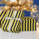 Das Geschenkpapier ist in schwarz, weiß und gelb gestrichen.