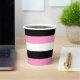 Schwarze, weiße und rosa Streifen. Striptes Bild kann gedreht oder geradeaus gedreht und Text auf Vorder- und/oder Rückseite hinzugefügt werden. Von celeste@khoncepts.com