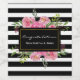 Elegante Hochzeitsweinetiketten, in schwarz-weißem, horizontalem Streifenmuster gefertigt, mit Grafiken von schönen rosa Blume. In einem schwarzen Rechteck in der Mitte des Etiketts befindet sich ein benutzerdefinierter weißer Text. Personalisieren Sie den Text, um zu lesen, was Sie gewollt, passende Wein Geschenktasche ist vorhanden.