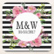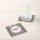 Elegante Untersetzer aus Papppapier Hochzeitskunst in schwarz-weiß gestreiften Mustern, mit hübschen Aquarellpink-Fußbäumen. Ein weißer, runder Textbereich in der Mitte des Untersetzer hat einen benutzerdefinierten schwarzen Text. Personalisieren Sie die Monogramme der Braut und des Bräutigams und das Hochzeitstag, für Ihre Hochzeit oder Ihren besondere Anlass.