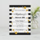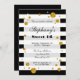 Diese modische Einladung ist großartig, um ein Sweet 16 Party mit Glamour und Stil zu feiern. Es verfügt über einen Streifen Hintergrund und Imitation Glitzer Punkte schwebend herum. Die Farbpalette in Schwarz, Weiß und Gold verleiht dem Ganzen ein elegantes und stilvolles Ambiente. Dieses zeitlose Design ist ideal für eine junge Dame, die gleichzeitig Spaß und Klasse hat.