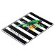 Schwarz-Weiß-Streifen und farbenfrohe Papagei-Blume mit orangefarbenen Blätter. Anpassbare Notebookvorlage