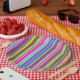 Dieses Design ist mit einem Augapult von Streifen (oder Linien) verschiedener Farben ausgestattet.