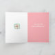 Eine leichte Ermutigungskarte mit einem Dessert-Thema mit einem rosa kleinen Vier in einer Süßwarenverpackung illustriert mit Aquarell und handgemalten Dessertwörtern im Hintergrund in den Tönen Karamelll, Erdbeere und Schokolade. Im Inneren befindet sich eine kleine Süßigkeiten und ein warmer Rosa mit weißem Text, den Sie anpassen können.
