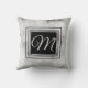 Dieses bedrückte, graue und schwarze Kissen ist ein originelles Design mit einem modernen Bauernstil aus künstlerischem Shabby Chic. Art Copyright Ann Powell alle Rechte vorbehalten.