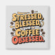 "Stressed, gesegnet und Kaffee besessen" - Retro Coffee Lover’s Dream Channel mit seinem hellen, Retro-inspirierten Design die lebendige Energie der 1970er Jahre! Ideal für alle, die mit etwas Stress, viel Dankbarkeit und einem konstanten Coffein-Kick leben. Mit frommen Schriftart und kühnen Farbtönen ist dieses Design eine lebendige Hommage an Kaffeeliebhaber, die Spaß behalten haben, selbst wenn es hart auf hart kommt. Fügen Sie Ihrem Tag eine Vintage Liebe mit Flair und Kaffee hinzu!
