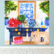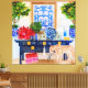 Wasserfarbe der Geparden und ihrer Tasse im chinoiserie-Interieur mit Zitronenbäumen
