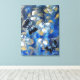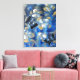Das Bild zeigt schwarze Schmetterlinge, die auf einem abstrakten, blauen Hintergrund zart verteilt sind. Die blauen Töne reichen von tiefem Indigo bis hin zu sanftem Himmelblau und schaffen eine traumhafte Atmosphäre. Die Schmetterlinge, im krassen Gegensatz dazu, befinden sich in verschiedenen Positionen - einige in der Flucht, andere ruhen - und fügen der Komposition ein Gefühl der Bewegung hinzu. Der Hintergrund mit Pinselstrichen und feinen Gesichtszügen erinnert an ein Gefühl an Tiefe und Gelassenheit, während die schwarzen Schmetterlinge als elegante, geheimnisvolle Figuren auffallen und eine Touch Kontrast bringen