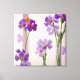 Abstrakte Wandkunst, violette Blumen und klare Vasen verleihen der Zimmerdekoration Akzente und Rhythmus.