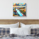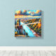 Dieses atemberaubende Kunstwerk zeigt die ikonische Clifton-Hängebrücke, die majestätisch über der Avon-Schlucht in Bristol, England, stehend ist. Das Stück bietet einen atemberaubenden Ausblick während eines scheinbar dramatischen Sonnenuntergangs, mit reichen und lebhaften Farbtönen in Orange, Gelb, Blau und aquamarinem Schwenken durch den Himmel. Die dynamischen Wolken oben ergänzen die landschaftliche Schönheit der Landschaft und heben den impressionistischen Stil hervor, der die Szene zum Leben erweckt und eine dynamische und ausdrucksvolle Atmosphäre schafft. Die Brücke selbst, beleuchtet durch das goldene Licht, bildet den Mittelpunkt dieses dynamischen und prächtigen Drucks.