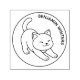 Cute cartoon illustration of a white cat having a good stretch. Customizable text.
