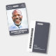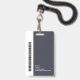 Ein modernes und einfaches Abzeichen, das nicht von den wichtigen Details ablenkt. Leicht zu lesen aus der Ferne. Fügen Sie ein individuelles Logo und Firmendetails hinzu. Fügen Sie den Namen, das Foto und den beruflichen Titel des Mitarbeiters hinzu. Die Bar der Farbe kann so angepasst werden, dass sie den offiziellen Farben des Unternehmens entspricht. Fügen Sie auf der Rückseite weitere Informationen hinzu, wie z. B. die Rücksendeadresse und die Mitarbeiternummer. Ideal für ovale Logos.