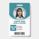 Dieses vertikale medizinische Foto ID Abzeichen zeichnet sich durch ein modernes, weißes und hellblaues Design aus. Geeignet mit dem Namen und Logo Ihres Krankenhauses und Ihrem Foto, Namen, Position, ID, Standort und Strichcode. Die Rückseite zeigt nützliche personalisierbare Informationen im Falle eines Verlustes.