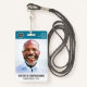 Ein modernes und einfaches Abzeichen, das nicht von den wichtigen Details ablenkt. Leicht zu lesen aus der Ferne. Fügen Sie ein individuelles Logo und Firmendetails hinzu. Fügen Sie den Namen, das Foto und den beruflichen Titel des Mitarbeiters hinzu. Die Bar der Farbe kann so angepasst werden, dass sie den offiziellen Farben des Unternehmens entspricht. Fügen Sie auf der Rückseite weitere Informationen hinzu, wie z. B. die Rücksendeadresse und die Mitarbeiternummer. Ideal für runde Logos.