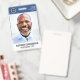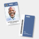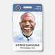 Ein modernes und einfaches Abzeichen, das nicht von den wichtigen Details ablenkt. Leicht zu lesen aus der Ferne. Fügen Sie ein individuelles Logo und Firmendetails hinzu. Fügen Sie den Namen, das Foto und den beruflichen Titel des Mitarbeiters hinzu. Die Bar der Farbe kann so angepasst werden, dass sie den offiziellen Farben des Unternehmens entspricht. Fügen Sie auf der Rückseite weitere Informationen hinzu, wie z. B. die Rücksendeadresse und die Mitarbeiternummer. Ideal für runde Logos.