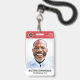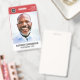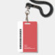 Ein modernes und einfaches Abzeichen, das nicht von den wichtigen Details ablenkt. Leicht zu lesen aus der Ferne. Fügen Sie ein individuelles Logo und Firmendetails hinzu. Fügen Sie den Namen, das Foto und den beruflichen Titel des Mitarbeiters hinzu. Die Bar der Farbe kann so angepasst werden, dass sie den offiziellen Farben des Unternehmens entspricht. Fügen Sie auf der Rückseite weitere Informationen hinzu, wie z. B. die Rücksendeadresse und die Mitarbeiternummer. Ideal für runde Logos.