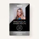 Dieses moderne Namens-Abzeichen-Design kann mit Ihrem Firmennamen, Logo und Kontaktdaten sowie einem Mitarbeiter-Foto und Strichcode angepasst werden.