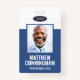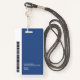 Ein modernes und einfaches Abzeichen, das nicht von den wichtigen Details ablenkt. Leicht lesbar aus der Ferne. Fügen Sie ein individuelles Logo und Firmendetails hinzu. Geben Sie den Namen, das Foto und den beruflichen Titel des Mitarbeiters ein. Die Bar der Farben kann so angepasst werden, dass sie den offiziellen Farben des Unternehmens entspricht. Fügen Sie auf der Rückseite weitere Informationen wie Rücksendeadresse und die Mitarbeiternummer hinzu. Ideal für ovale Logos.