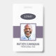 Ein modernes und einfaches Abzeichen, das nicht von den wichtigen Details ablenkt. Leicht zu lesen aus der Ferne. Fügen Sie ein individuelles Logo und Firmendetails hinzu. Fügen Sie den Namen, das Foto und den beruflichen Titel des Mitarbeiters hinzu. Die Bar der Farbe kann so angepasst werden, dass sie den offiziellen Farben des Unternehmens entspricht. Fügen Sie auf der Rückseite weitere Informationen hinzu, wie z. B. die Rücksendeadresse und die Mitarbeiternummer. Ideal für ovale Logos.