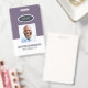 Ein modernes und einfaches Abzeichen, das nicht von den wichtigen Details ablenkt. Leicht lesbar aus der Ferne. Fügen Sie ein individuelles Logo und Firmendetails hinzu. Geben Sie den Namen, das Foto und den beruflichen Titel des Mitarbeiters ein. Die Bar der Farben kann so angepasst werden, dass sie den offiziellen Farben des Unternehmens entspricht. Fügen Sie auf der Rückseite weitere Informationen wie Rücksendeadresse und die Mitarbeiternummer hinzu. Ideal für ovale Logos.