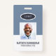 Ein modernes und einfaches Abzeichen, das nicht von den wichtigen Details ablenkt. Leicht lesbar aus der Ferne. Fügen Sie ein individuelles Logo und Firmendetails hinzu. Geben Sie den Namen, das Foto und den beruflichen Titel des Mitarbeiters ein. Die Bar der Farben kann so angepasst werden, dass sie den offiziellen Farben des Unternehmens entspricht. Fügen Sie auf der Rückseite weitere Informationen wie Rücksendeadresse und die Mitarbeiternummer hinzu. Ideal für ovale Logos.