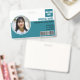 Dieses horizontale Foto-ID-Abzeichen zeichnet sich durch ein modernes, weißes und hellblaues Design mit rundem, anpassbarem Foto aus. Personalisierbar mit dem Namen und Logo Ihres Krankenhauses und mit Foto, Name, Position, ID, Ort und Strichcode. Auf der Rückseite können Sie nützliche Informationen im Falle eines Verlustes hinzufügen.