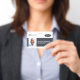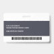 Ein modernes und einfaches Abzeichen, das nicht von den wichtigen Details ablenkt. Leicht zu lesen aus der Ferne. Fügen Sie ein individuelles Logo und Firmendetails hinzu. Fügen Sie den Namen, das Foto und den beruflichen Titel des Mitarbeiters hinzu. Die Bar der Farbe kann so angepasst werden, dass sie den offiziellen Farben des Unternehmens entspricht. Fügen Sie auf der Rückseite weitere Informationen hinzu, wie z. B. die Rücksendeadresse und die Mitarbeiternummer.