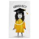 Strichfigur-Mädchen-Absolvent mit Black Cap und Di Kleine Geschenktüte
