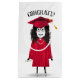 Strichfigur-Mädchen-Absolvent mit Red Cap und Dipl Kleine Geschenktüte