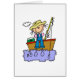 Ein Strichmännchenmädchen in einem Strohhutfischen von einem Boot auf dem See auf niedlichen kundengerechten Strichmännchenfischen-Entwurf T - Shirts, Karten, Tassen, Taschentaschen, Aufklebern und mehr!