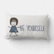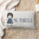 Strichfigur-Mädchen in Denim Kleid mit Zitat Lendenkissen
