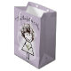 Strichfigur-Mädchen in Spitzenkleidung und Sneaker Mittlere Geschenktüte