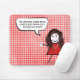 Strichfigur-Mädchen mit Kaffee Tasse auf Gingham Mousepad