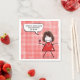 Strichfigur-Mädchen mit Weinglas auf Gingham Serviette